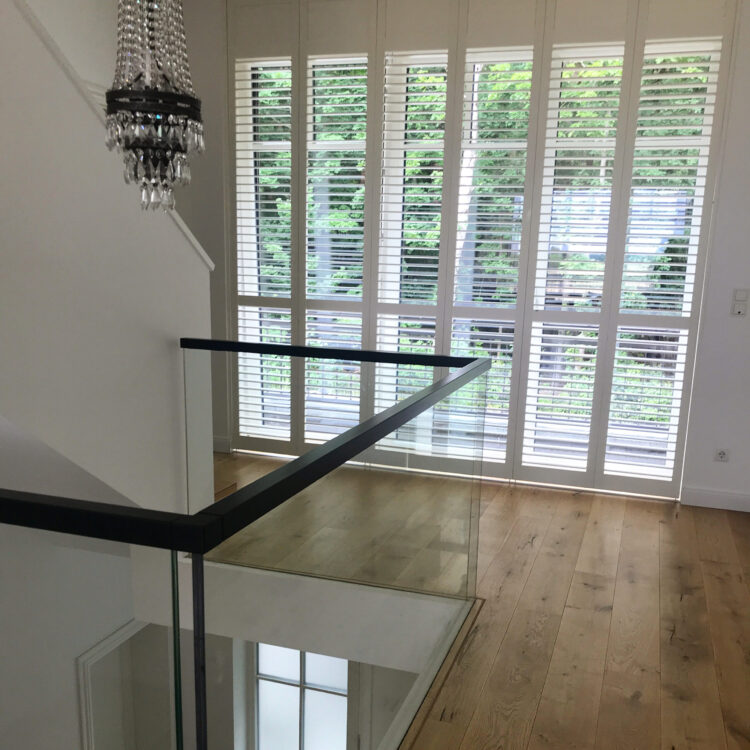 Shutters sind maßgefertigte Fensterläden, die es ermöglichen, das Licht im Raum individuell zu steuern. Sie bieten sowohl Sichtschutz als auch eine elegante Möglichkeit, die Raumtemperatur zu regulieren.
